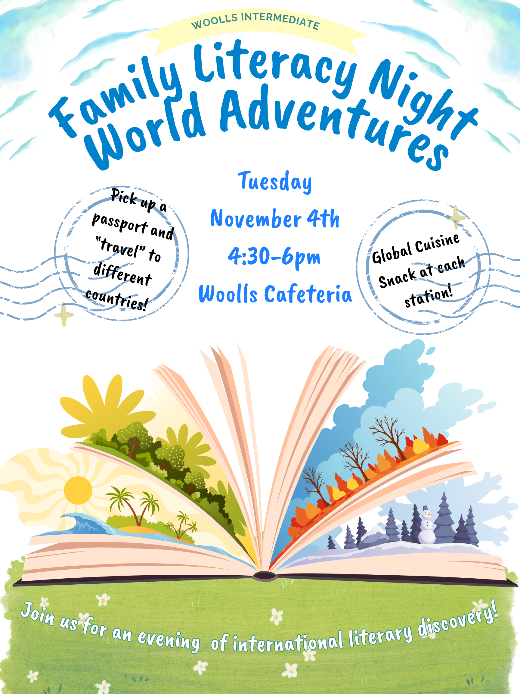 Woolls Family Literacy Night Family Literacy Night: World Adventures Tuesday, November 4th 4:30-6pm Woolls Cafeteria